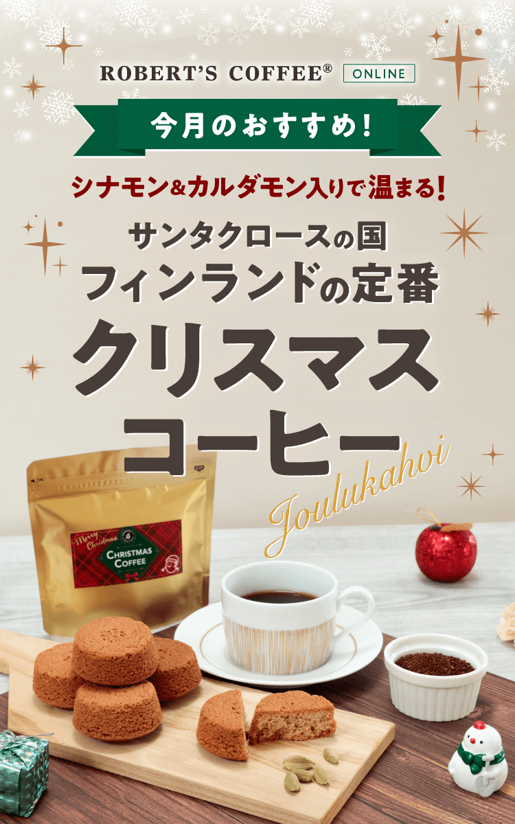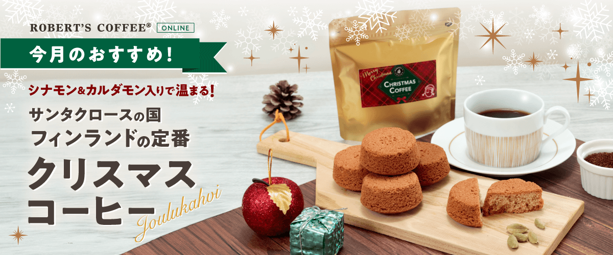 ロバーツコーヒーでは、オリジナルブレンドのクリスマスコーヒーとカルダモンクッキーとのセットを販売中です。コーヒーの単品もご用意しておりますのでぜひこの機会にスペシャルな味をお楽しみください!